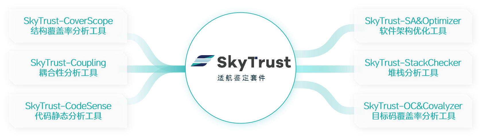 SkyTrust-Coupling 是一款自主研发的满足DO-178C对数据耦合和控制耦合要求的耦合性分析工具。在目标机环境下进行软件耦合性分析, 支持自动提取耦合因子和耦合点,绘制模块间耦合关系图,设计测试用例并执行统计耦合覆盖率。与传统人工相比,可 节省90%工作量,彻底填补了国内此项技术的空白。